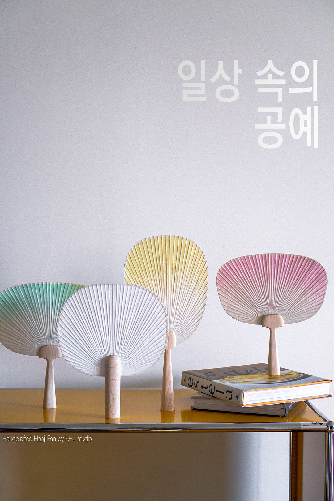 전주의 한지 장인이 뜬 수제 한지, 직접 대나무를 키우고 다듬는 부채 장인 만든 부채살과 선면, 김현주 작가가 염색한 한지와 직접 다듬은 손잡이가 더해져 완성되었다. 촘촘한 대나무살에 한지를 여러 겹 붙여 빳빳한 부채는 내구성이 좋을 뿐 아니라 적은 힘으로도 시원한 바람을 일으켜 준다.