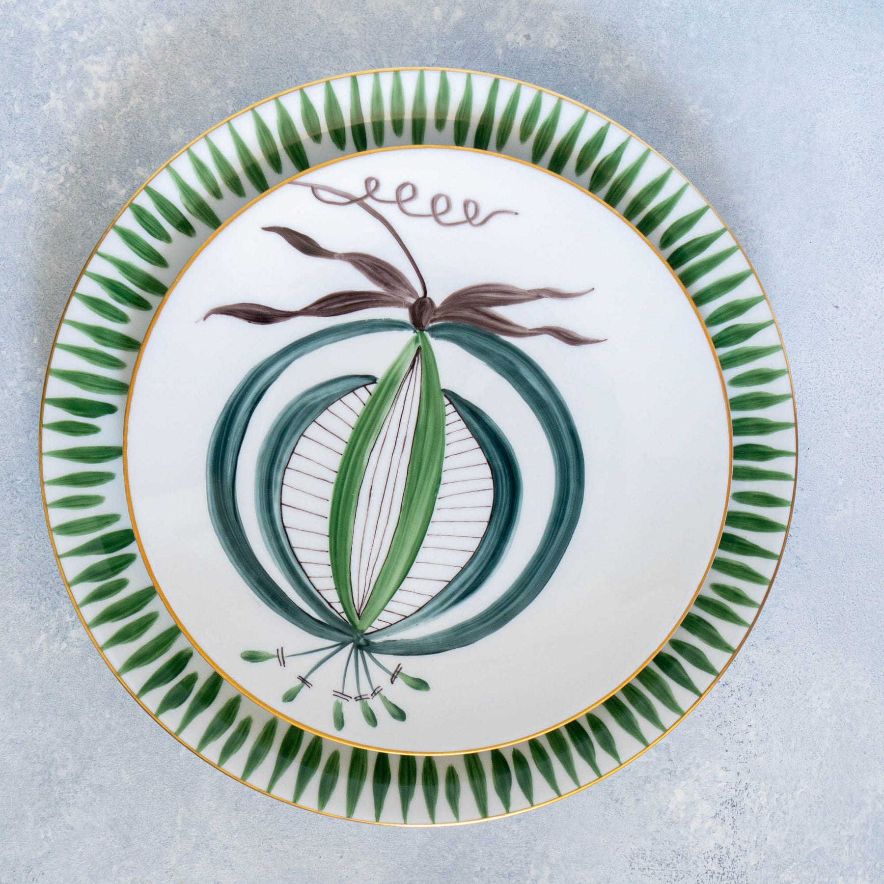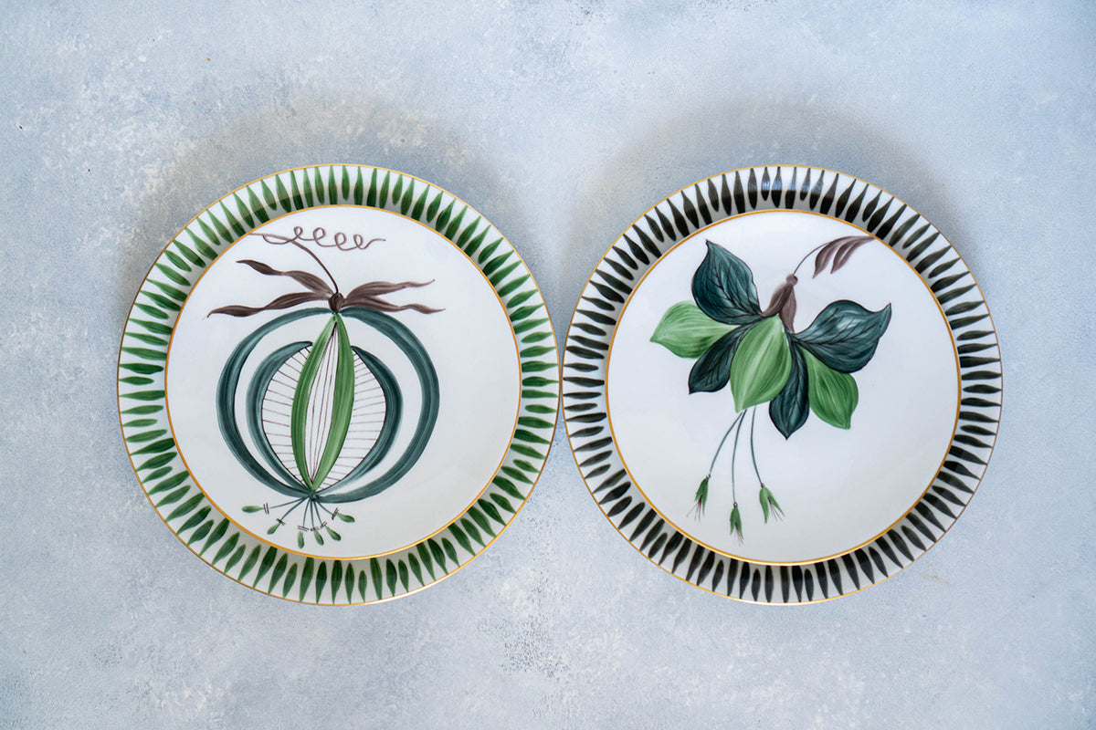 This new collection is customized for Leef NYC. We selected two flowers, Lily and Iris from Jardins D'Udaipur and represent two different color palates. You can pair them with our Allee De Cypres light olive green (NEW) dinner plates.