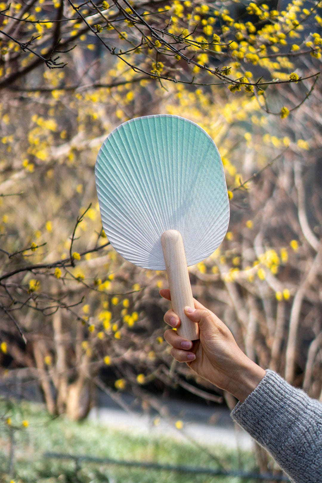 Hyunjoo Kim's forest breeze collection was made with handmade hanji from the artisan in Jeonju, Korea, and hand dyed by the artist, one by one. The bamboo on the fan was harvested and crafted by the artisan in South Korea and later trimmed by the artist herself.
